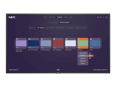 The MultiSync M-MPi4 displays provide a sleek combination of intuitive media playback with professional digital display technology for impactful messaging in retail environments, leisure and museum applications as well as quick service restaurants. Fitting perfectly into corporate environments and public spaces, the modern, slim design integrates seamlessly with the surrounding architecture whilst the 500 cd/m² brightness output and anti-glare surface ensures excellent viewing.