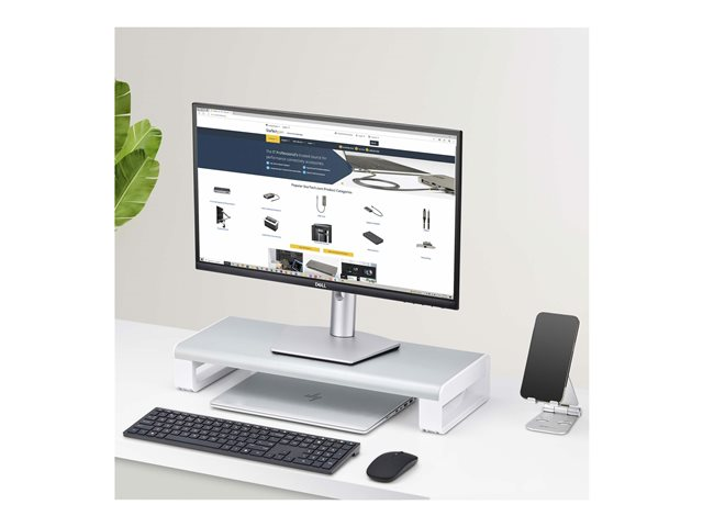 StarTech.com Ergonomic Monitor Riser Stand, 33lb Max, Fixed height 3.5in - Monitorställ - på bord - vit och silver - TAA-kompatibel