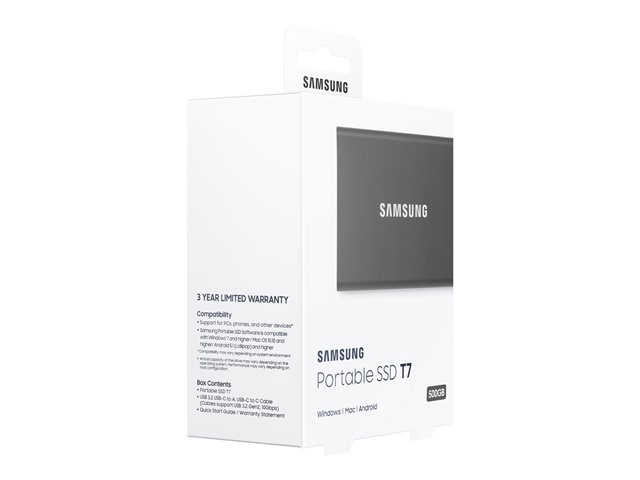 Samsung T7 MU-PC500T - SSD - krypterat - 500 GB - extern (portabel) - USB 3.2 Gen 2 (USB-C kontakt) - 256 bitars AES - Titan gray MU-PC500T/WW
