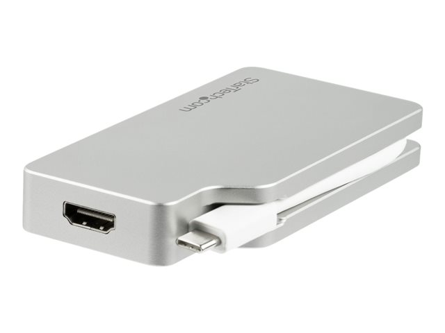 StarTech.com 4-i-1 USB-C-videoadapter med flera portar - aluminium - 4K 30Hz - silver - Videokort - USB-C hane till HD-15 (VGA), DVI-D, HDMI, Mini DisplayPort hona - 10.5 cm - silver - stöd för 4K, aktiv