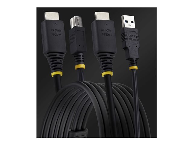 10ft (3m) HDMI och USB 5Gbps KVM-kabel från StarTech.com är utformad för att förbättra anslutningsmöjligheter och bekvämlighet. Denna mångsidiga KVM-kabel möjliggör sömlös anslutning mellan flera enheter och ger stöd för videoupplösning upp till 4K vid 60 Hz och HDR10. Njut av dataöverföring med en hastighet på upp till 5 Gbps, perfekt för effektiv drift över system.