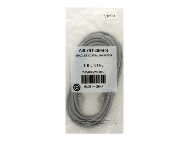 Belkin - Patch-kabel - RJ-45 (hane) till RJ-45 (hane) - 2 m - UTP - CAT 5e - hakfri - grå - för Omniview SMB 1x16, SMB 1x8; OmniView SMB CAT5 KVM Switch A3L791B02M-S