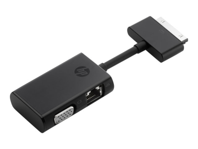 - Connect the adapter to the notebook's side docking port to quickly add RJ-45 and VGA ports