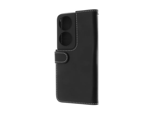 Insmat - Vikbart fodral för mobiltelefon - genuint läder, bomullssömmar, kartong+papper+aluminiumfolie, termoplastisk polyuretan (TPU) - svart - för Honor X7A 650-3240