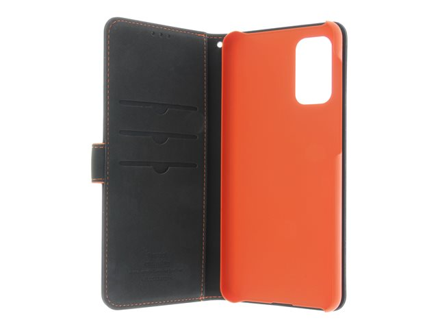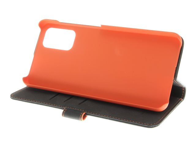 Insmat - Vikbart fodral för mobiltelefon - läder, kartong+papper+aluminiumfolie - svart, orange - för Samsung Galaxy A32 5G 650-2970