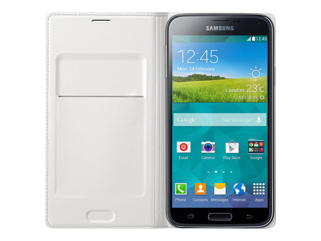Samsung Flip Wallet EF-WG900 - Vikbart fodral för mobiltelefon - vit - för Galaxy S5, S5 Neo EF-WG900BWEGWW