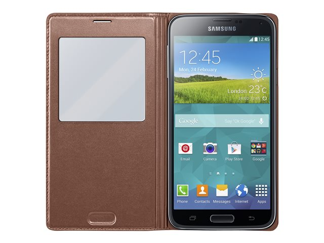 Samsung S View EF-CG900B - Vikbart fodral för mobiltelefon - guld - för Galaxy S5, S5 Neo EF-CG900BDEGWW