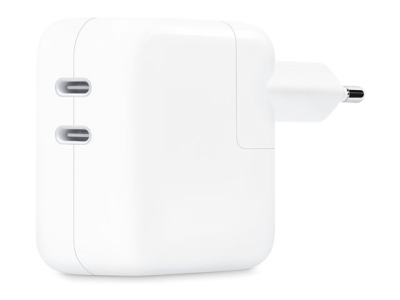 Upplev bekvämligheten och effektiviteten hos Apples nätadapter, som är särskilt utformad för ditt Apple-ekosystem. Oavsett om du vill ladda din mobiltelefon, bärbara dator, surfplatta, klocka eller trådlösa hörlurar har den här adaptern allt du behöver. Med två 24-poliga USB-C-utgångar ger den flexibilitet att ladda två enheter samtidigt, vilket sparar tid och håller dig uppkopplad. Med en kraftfull uteffekt på 35 W ser den till att dina enheter laddas snabbt och är redo att användas. Få ut mesta möjliga av dina Apple-enheter med denna oumbärliga nätadapter.