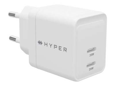 HyperJuice - Strömadapter - GaN - 35 Watt - QC 3.0, Power Delivery 3.0 + PPS - 2 utdatakontakter (USB-C) - vit - Europa HJG35EU