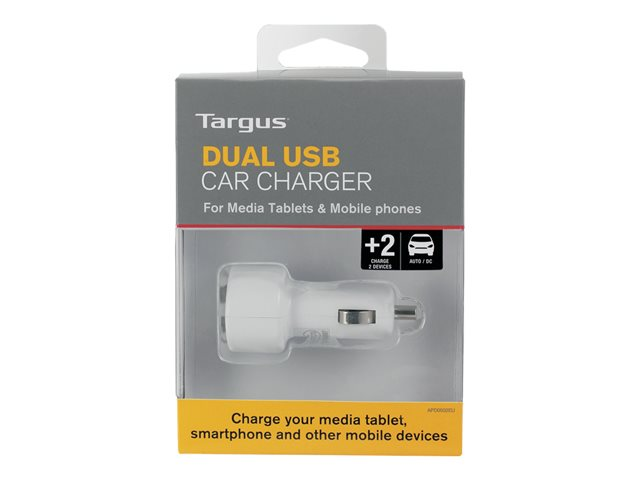 Targus Dual USB Car Charger For Media Tablets & Mobile Phones - Strömadapter för bil - 5.1 VA - 3.1 A - 2 utdatakontakter (USB) - vit APD0502EU