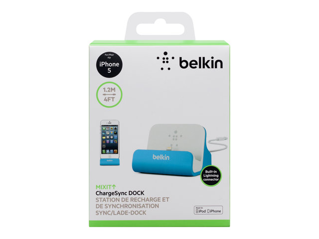 Charge and sync your iPhone 5 with the compact and stylish Belkin Charge + Sync Dock. To use, plug the 4-foot hardwire USB cable into your laptop and dock your device. To charge from the wall, simply plug it into your existing power supply, then plug into any wall outlet.