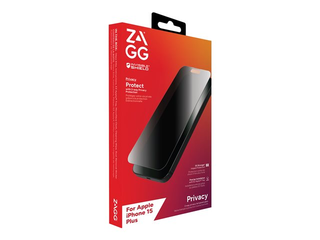 ZAGG InvisibleShield Glass Elite Privacy - Skärmskydd för mobiltelefon - glas - med sekretessfilter - 2-vägs - för Apple iPhone 15 Plus 200111793