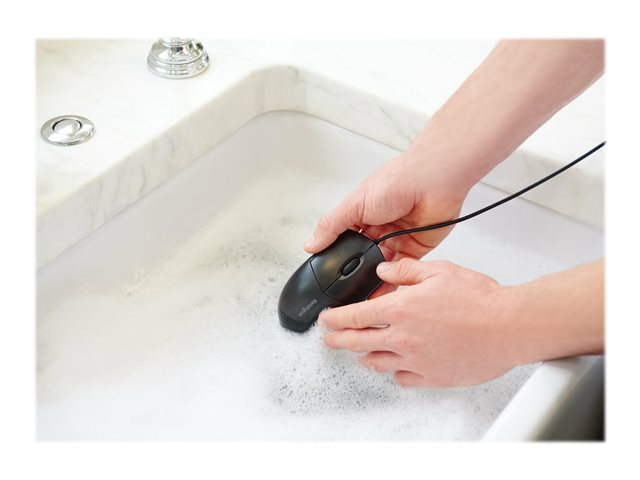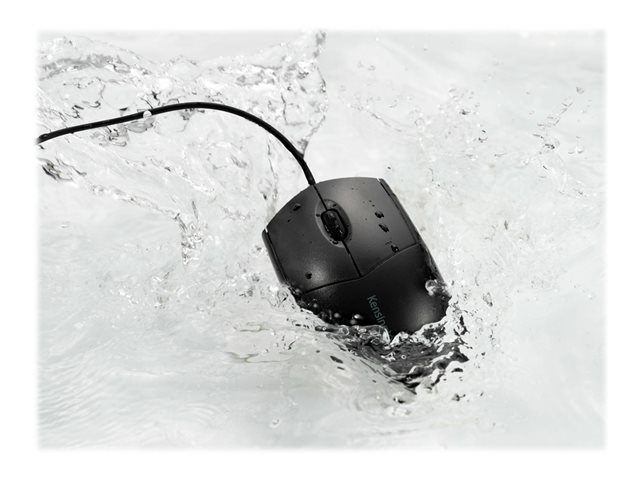 Pro Fit Wired Washable Mouse, med sin vattentäta, lätt att rengöra och robusta design, är det enkelt att upprätthålla en hygienisk yta utan att offra prestanda. Bekväm för användning med valfri hand och trådbunden USB-anslutningen ger den tillförlitlig prestanda utan behov av batterier. Plug-and-play, ingen mjukvara att ladda ner och installera. En perfekt följeslagare till Kensington Pro Fit Wired Washable Keyboard. Doppa inte USB-kontakten i vatten.