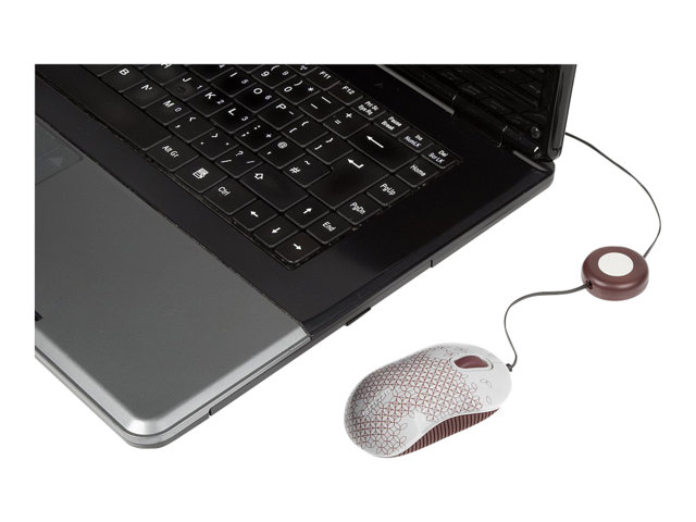 Targus Compact Laptop - Mus - höger- och vänsterhänta - optisk - 3 knappar - kabelansluten - USB - vit, röd
