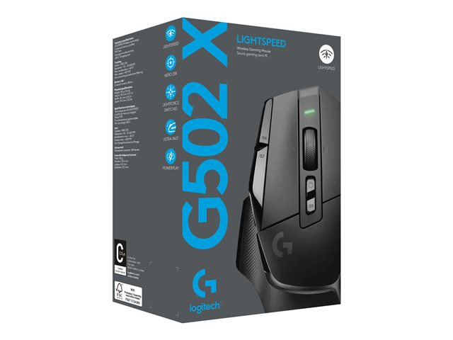 Logitech G G502 X LIGHTSPEED - Mus - optisk - 8 knappar - trådlös - 2.4 GHz - USB Logitech LIGHTSPEED-mottagare - svart 910-006181
