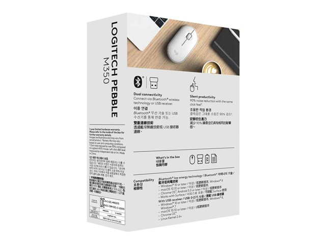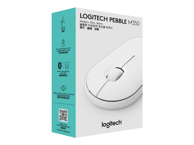 Logitech Pebble M350 - Mus - optisk - 3 knappar - trådlös - 2.4 GHz, Bluetooth - trådlös USB-mottagare - offwhite