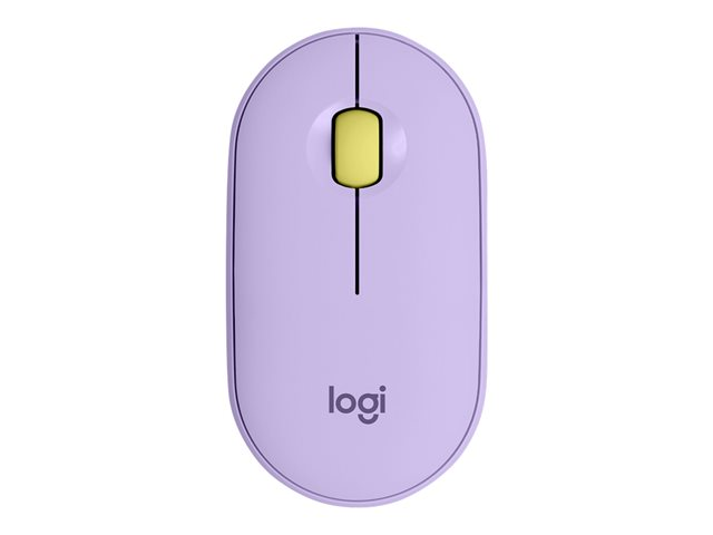 Logitech Pebble M350 - Mus - optisk - 3 knappar - trådlös - Bluetooth - trådlös USB-mottagare - lavender lemonade