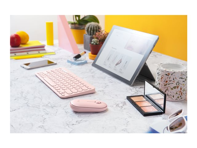 Logitech Pebble M350 - Mus - optisk - 3 knappar - trådlös - 2.4 GHz, Bluetooth - trådlös USB-mottagare - rosa