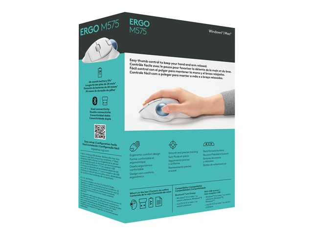 Minimera rörelser och maximera bekvämlighet med ERGO M575, en trådlös styrkula med en skulpterad form och mjuk, reaktionssnabb tumkontroll. Den behöver inte flyttas, så den är perfekt för små skrivbord.