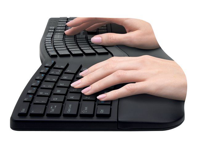 Kensington Pro Fit Ergo Wireless Keyboard - Tangentbord - trådlös - 2.4 GHz, Bluetooth 4.0 - hela norden - svart