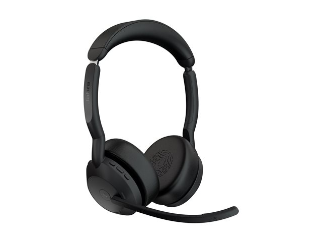 Jabra Evolve2 55 MS Stereo - Headset - på örat - Bluetooth - trådlös - aktiv brusradering - USB-C - svart - med laddningsställ - Optimerat för Microsoft Teams