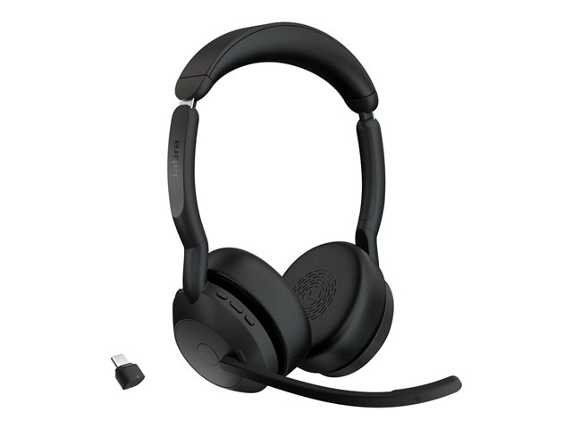 Jabra Evolve2 55 UC Stereo - Headset - på örat - Bluetooth - trådlös - aktiv brusradering - USB-C - svart - Zoomcertifierad, Cisco Webex Certified, Alcatel-Lucent-certifierad, Avaya-certifierad, Unify-certifierad, MFi-certifierad, Google Meet-certifierad, Amazon Chime-certifierad 25599-989-899