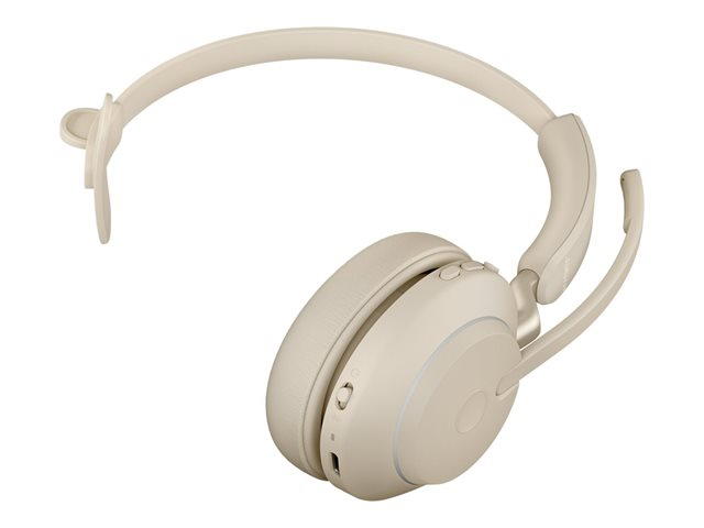 Jabra Evolve2 65 UC Mono - Headset - på örat - konvertibel - Bluetooth - trådlös - USB-A - ljudisolerande - beige - med laddningsställ