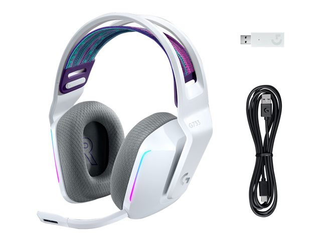 Logitech G G733 LIGHTSPEED Wireless RGB Gaming Headset - Headset - fullstorlek - 2,4 GHz - trådlös - vit