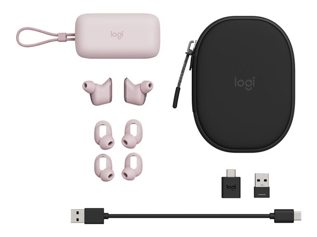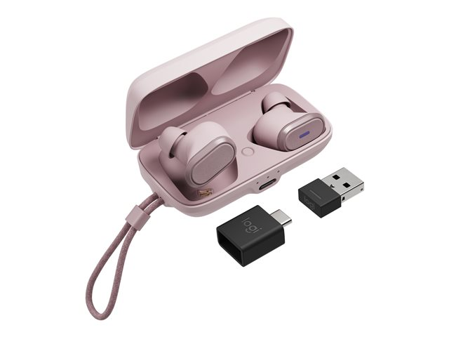 Logitech Zone True Wireless - True wireless-hörlurar med mikrofon - inuti örat - Bluetooth - aktiv brusradering - rosa
