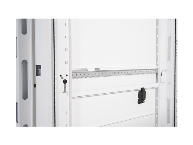 | Förpackningens innehåll | Stödhjulssats för rack, rackutjämningsfötter, perforerad bakdörr, sidopaneler, framlucka, justerbara vertikala monteringsskenor, tak, tangenter, delad perforerad bakdörr |