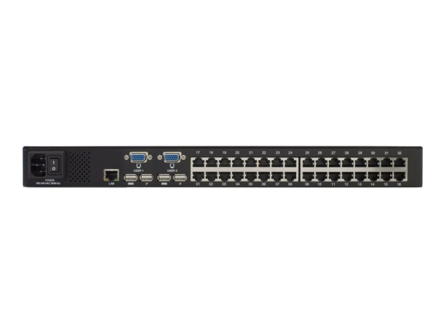 The OmniView Cat 5 232 KVM Switch enables two IT administrators to monitor and control their servers simultaneously. The KVM Switch provides reduced cable clutter and extended reach for up to 32 servers. The Cat 5 KVM Switch extends the distance between the server and Switch to up to 100 ft. Server Interface Modules (SIMs) are available for PS/2, USB, and Legacy Sun servers. One SIM is required per server connected to the SMB Cat 5 KVM Switch.