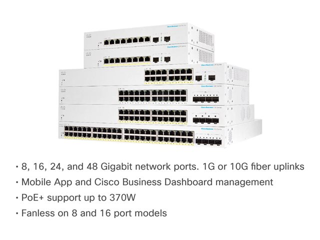 | Portar | 24 x 10/100/1000 (PoE+) + 4 x 10 Gigabit SFP+ (upplänk) |