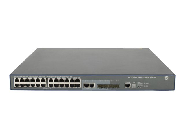 HPE 3600-24-PoE+ v2 SI - Switch - Administrerad - 24 x 10/100 (PoE+) + 4 x Gigabit SFP + 2 x delad 10/100/1000 - rackmonterbar - PoE+ (720 W)
