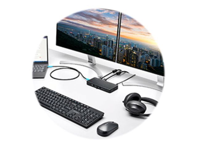 | Egenskaper | 85W strömleverans, stöd för upp till 3 skärmar, DisplayPort Alt Mode, plats för säkerhetslås (kabellås säljs separat), PC/ABS-hus, VESA-gränssnittsstöd |