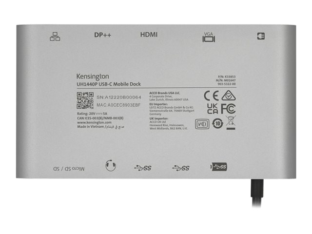 Kensington UH1440P - Dockningsstation - USB-C 3.2 Gen 1 / Thunderbolt 3 / Thunderbolt 4 - DP, HDMI, VGA - 1GbE K33853WW