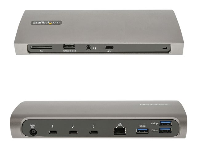 StarTech.com Thunderbolt 4 Dock, 96W Power Delivery, Single 8K/Dual Monitor 4K 60Hz, 3xTB4/USB4 ports, 4xUSB-A, SD, GbE, Thunderbolt 4 Docking Station for Windows or TB3 MacBook, 0.8m - Dockningsstation - Thunderbolt 4 - 3 x Thunderbolt - 1GbE