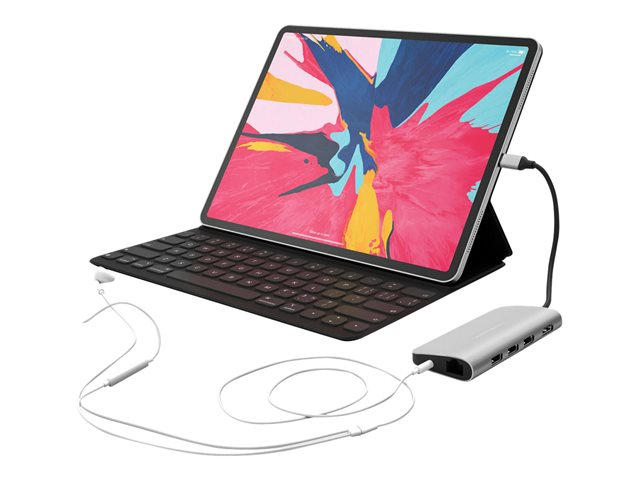 Optimized for iPad Pro 2018. Allows hub to sit flat on the table surface when connected to the iPad Pro.