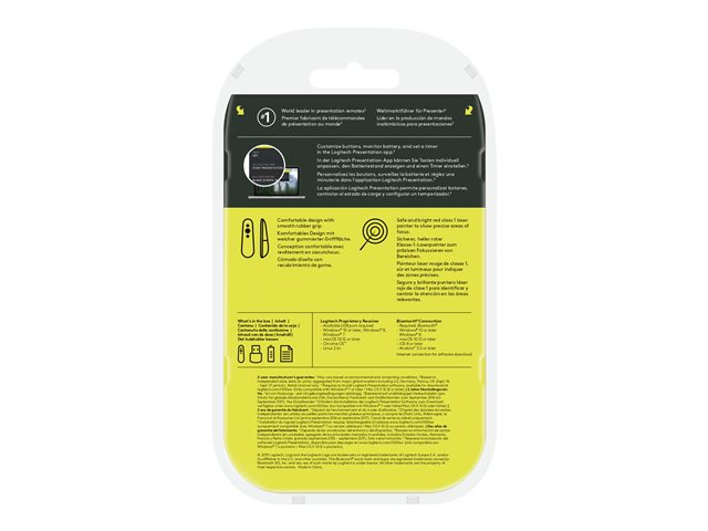 Leverera effektfulla presentationer med laserfjärrkontrollen R500s för presentation. Rör dig fritt och navigera presentationer från upp till 20 meters avstånd. Peka dessutom på exakta fokusområden med den röda laserpekaren.