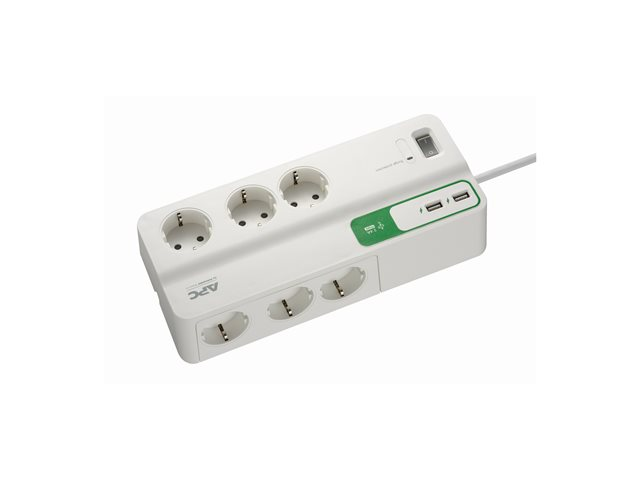 APC SurgeArrest Essential - Överspänningsskydd - AC 230 V - 2300 Watt - utgångskontakter: 6 - 2 m sladd - Tyskland - vit PM6U-GR
